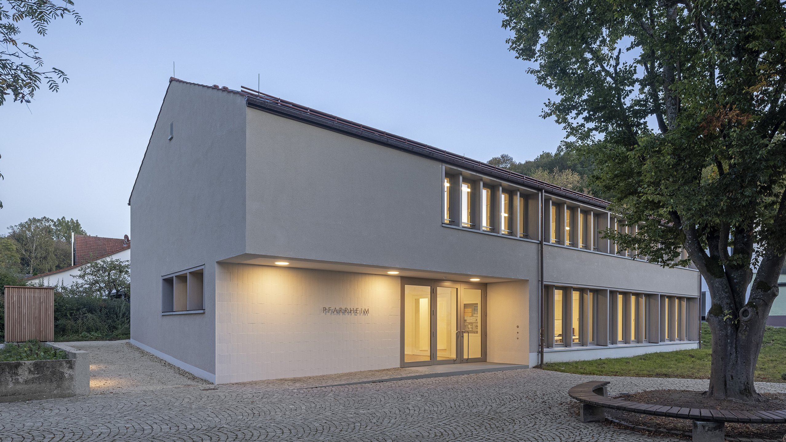 In Baierbach wurde das Wohnhaus eines ehemaligen Vierseithofs in ein öffentliches Gemeindezentrum transformiert. Die neuen Nutzungen – Gemeinderaum, Jugendtreff und Tagespflege – fügen sich überzeugend geschmeidig in den Bestand ein. Jede Funktion hat ihren speziellen räumlichen Ausdruck gefunden: Für die Senioren sind wohnliche Räume mit Dielenboden, eine Stube mit Eckbank entstanden, für die Jugend darf es etwas ruppiger sein mit geschlämmtem Mauerwerk und Estrichboden. Ihr Raum ist im Obergeschoss, die Jugendlichen bleiben hier für sich, an der Treppe der hofseitigen Außengalerie. Blickbeziehungen jedoch verbinden mit dem Gemeinderaum. Als zentrales Element erhält er die doppelte Höhe. Der für die barrierefreie Erschließung erforderliche Aufzug ist stimmig im Innenraum integriert.